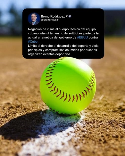 Bruno Rodríguez Parrilla a Kubai Köztársaság külügyminisztere közösségi oldalain arról tájékoztatott, hogy az Amerikai Egyesült Államok megtagadta a kubai softball válogatott edzői stábjának belépését területére.