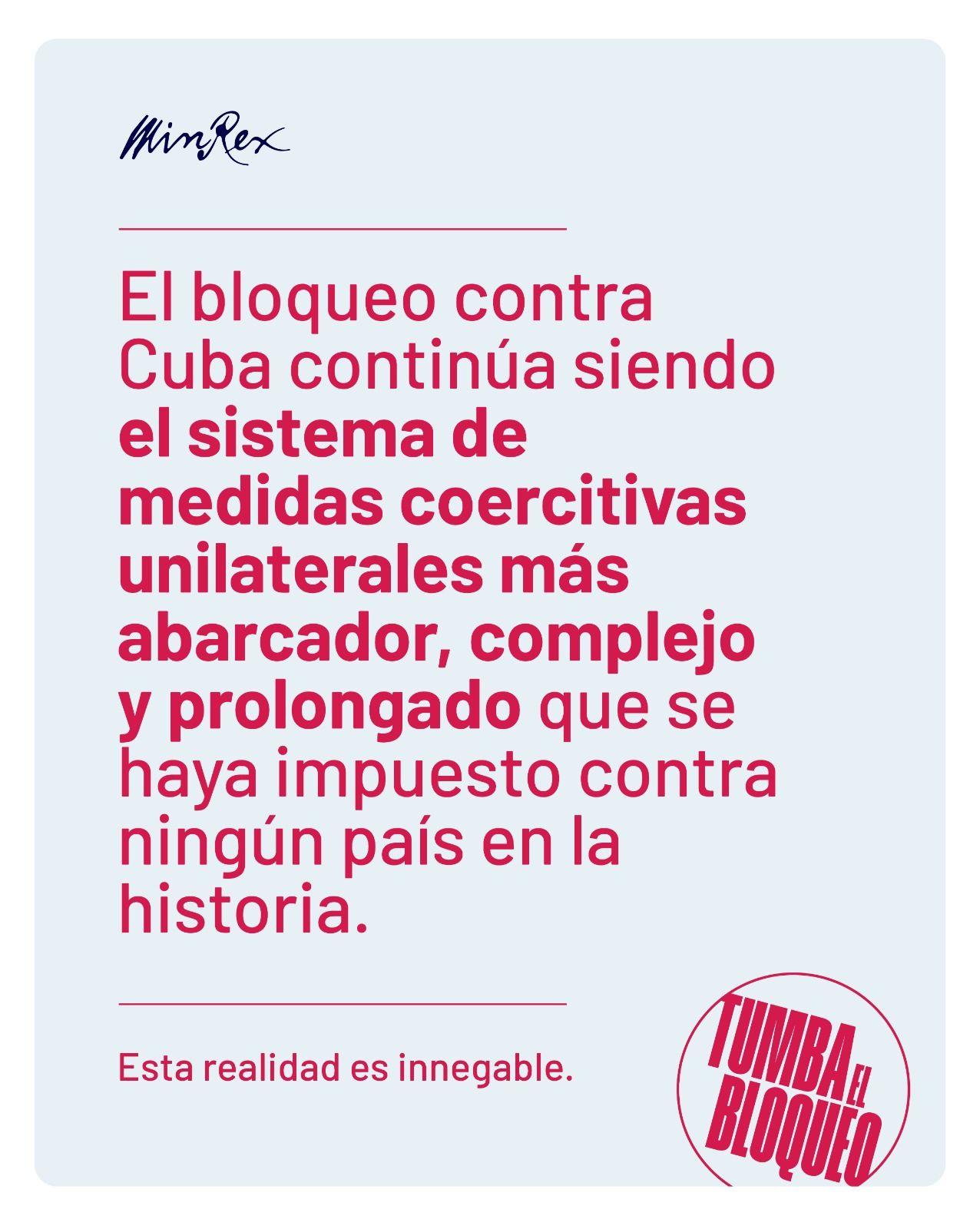 „46 év telt el, és ennek az országnak a történelme ismert, ennek az országnak a lakói ismerik azt, és ismerik a szomszédos birodalomét is, annak méretét, hatalmát, erejét, gazdagságát, technológiáját, a Világbank feletti uralmát, a Nemzetközi Valutaalap feletti uralmát, a világ pénzügyei feletti uralmát, annak az országnak, amely a legvaskosabb és leghihetetlenebb blokádot kényszerítette ránk.”